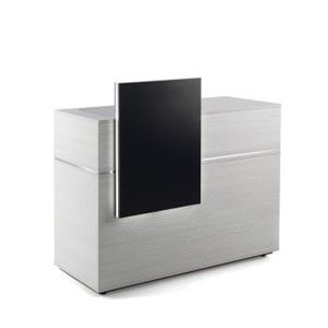 The vogue reception desk is available in 2 standard sizes: 1200 or 1500mm width and has many standard features including a front feature panel with LED lights and open storage and cupboard to the rear.